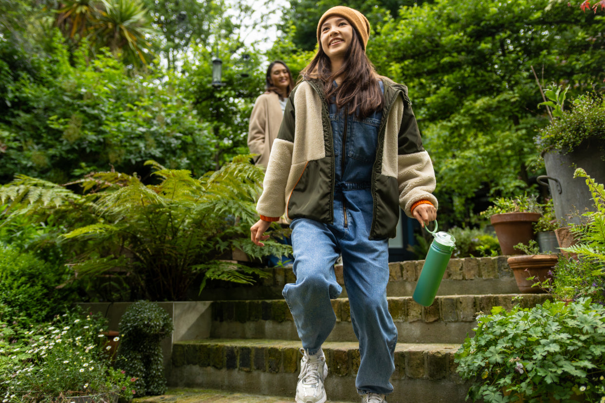 girl walking with her Doulton water bottle