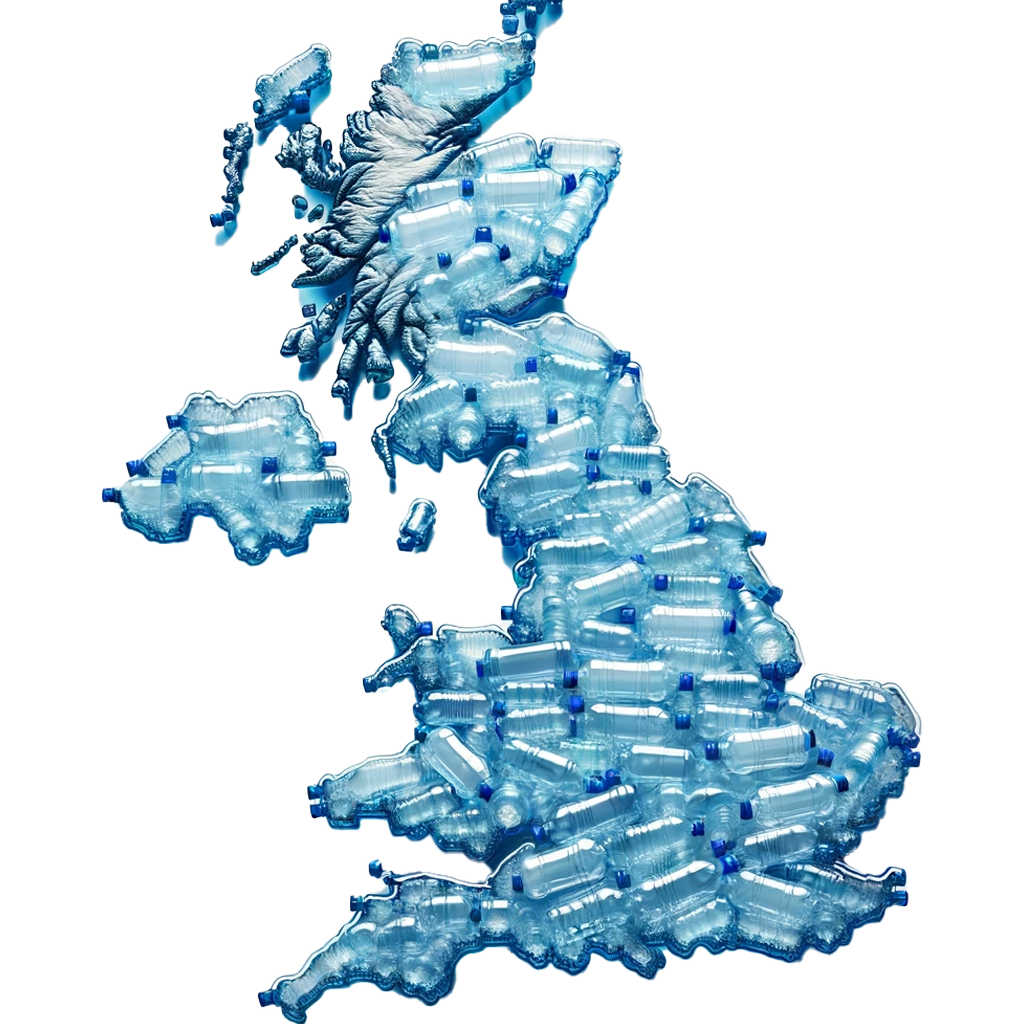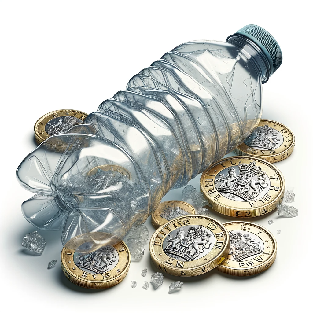 A plastic water bottle surrounded by £1 coins